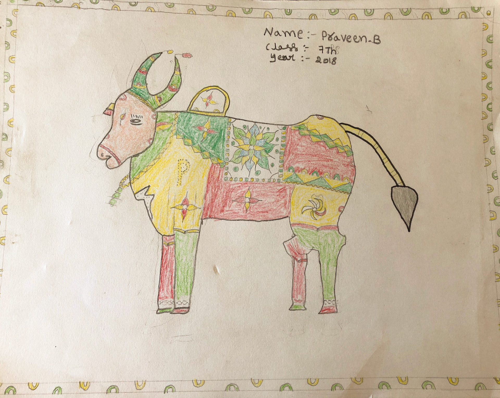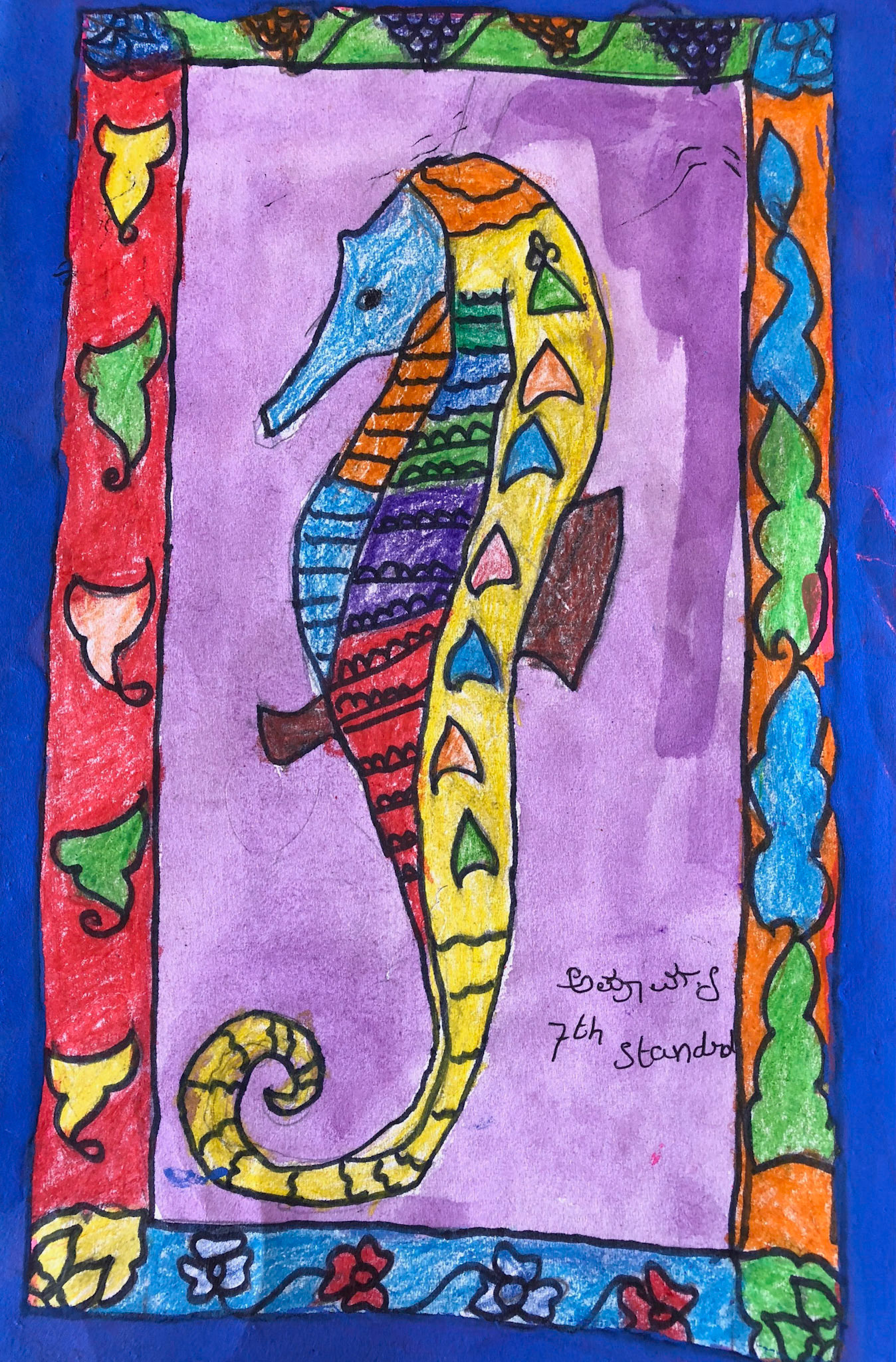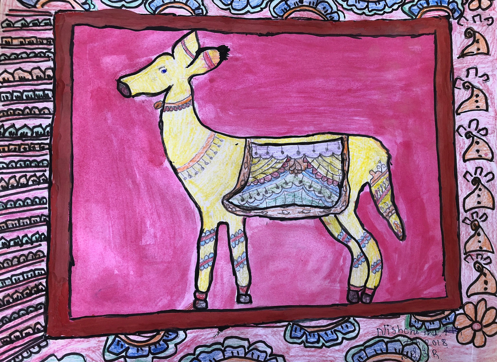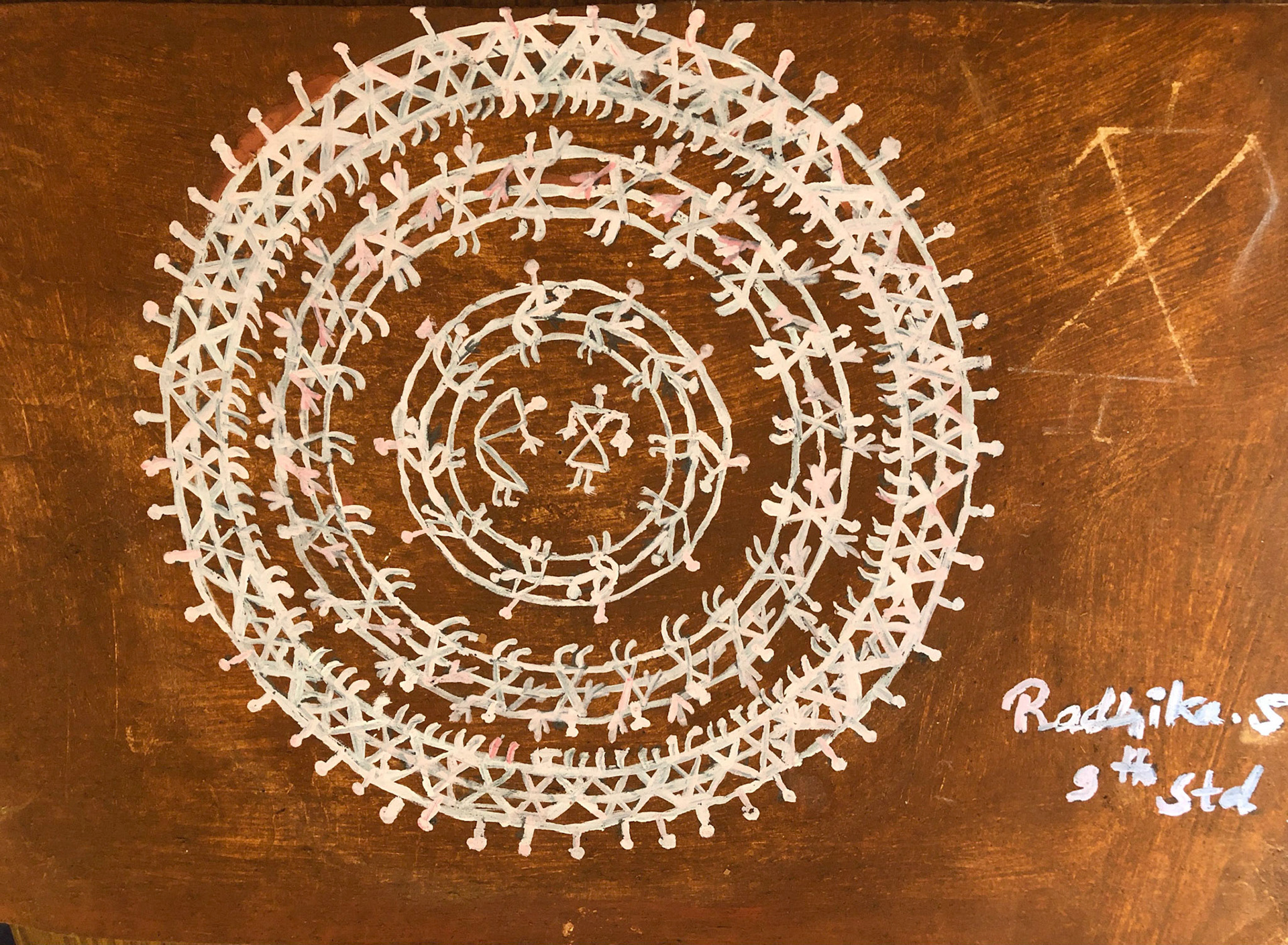 These are few of the art works by the high school students, where I introduced traditional paintings of India like Mysore style, Tanjore style, Madhubani, Kalamkari, and Gond.